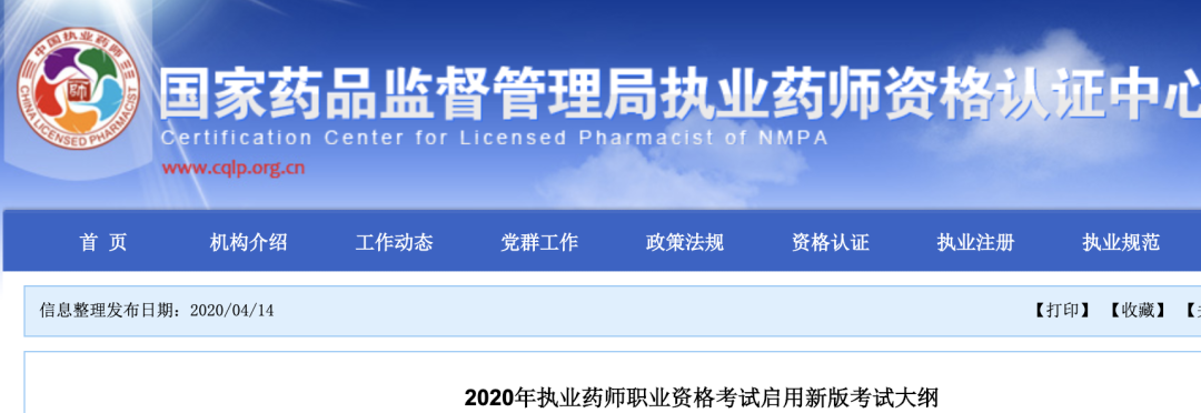 新版考試大綱將從2020年開始實施。2020年度執業藥師職業資格考試各科目均以新版考試大綱為命題依據。曾參加2019年度考試但還有部分考試科目未合格的考生,可參加以新版考試大綱為命題依據的相應科目考試。