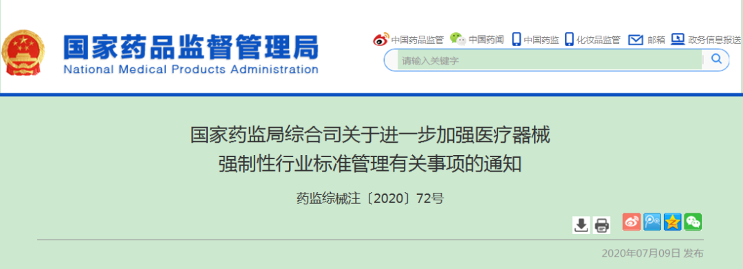 國家藥監局綜合司關于進一步加強醫療器械 強制性行業標準