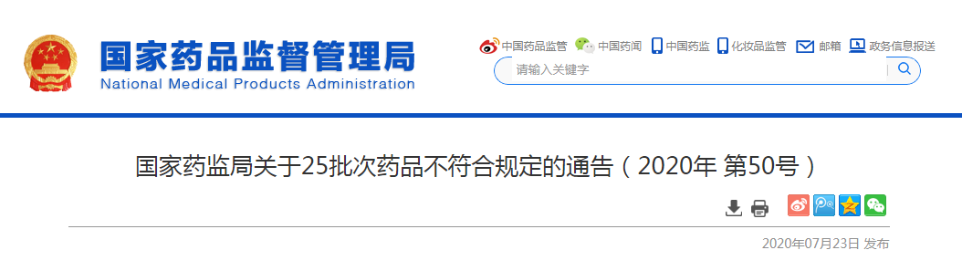 7月23日,國家藥監局發布了關于25批次藥品不符合規定的通告,有14家藥品生產企業生產的25批次藥品不符合規定。