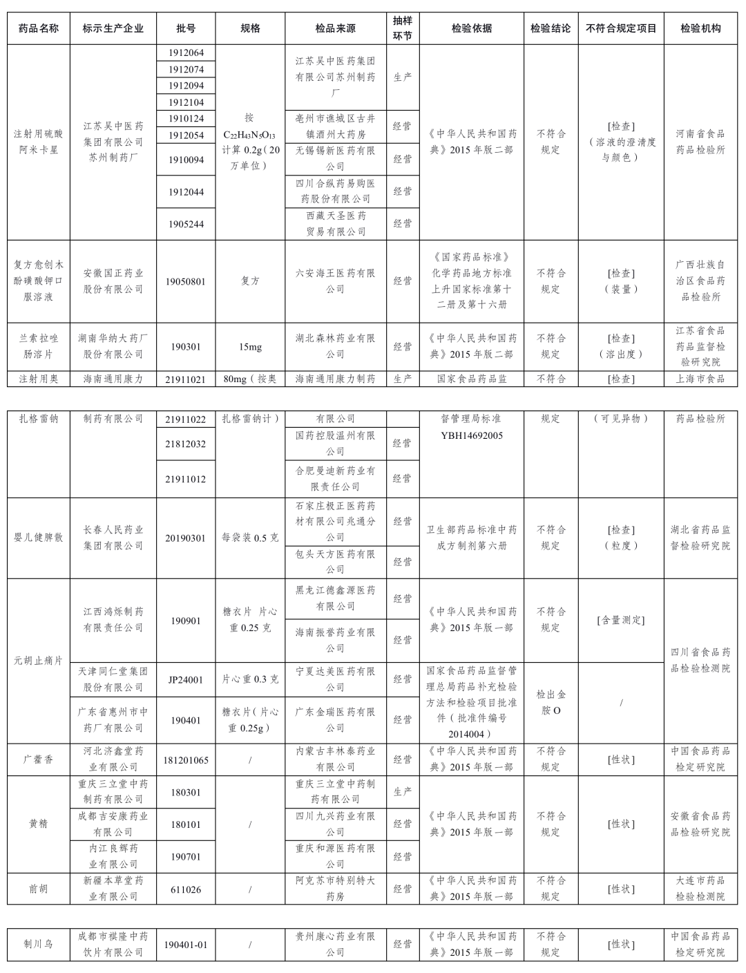 經河南省食品藥品檢驗所等9家藥品檢驗機構檢驗,標示為江蘇吳中醫藥集團有限公司蘇州制藥廠等14家藥品生產企業生產的25批次藥品不符合規定。現將相關情況通告如下: