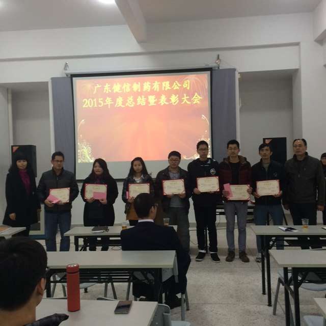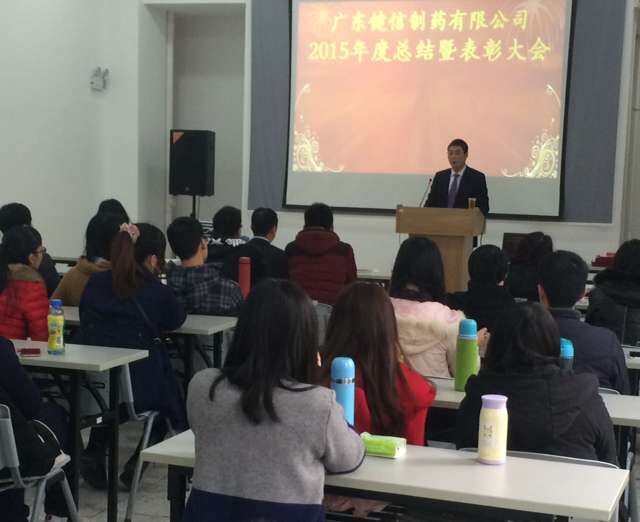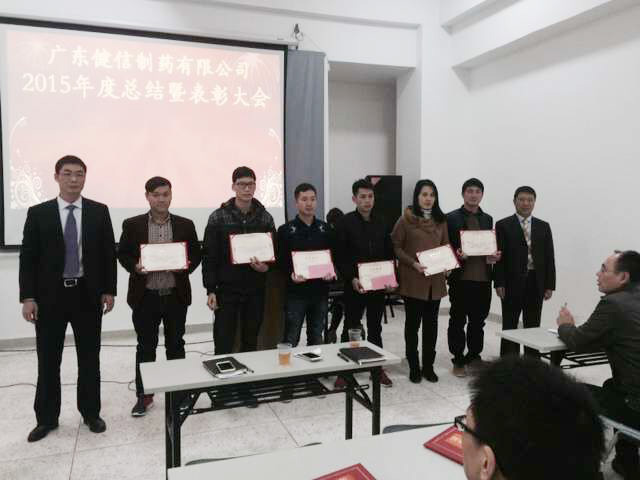 健信制藥和健信藥品于2016年2月14日,舉行2015年度表彰總結大會。會上,總經理黃邦信、副總經理黃國勝、副總經理鄭宏洪、業務經理李國、營銷中心經理黃邦彭、表彰代表人黃麗娜、質量總監劉佩潔先后匯報了2015年度的工作業績成果,并對全體員工一年來的付出與努力表示了衷心的感謝!